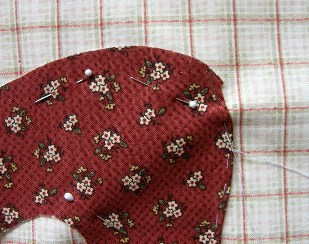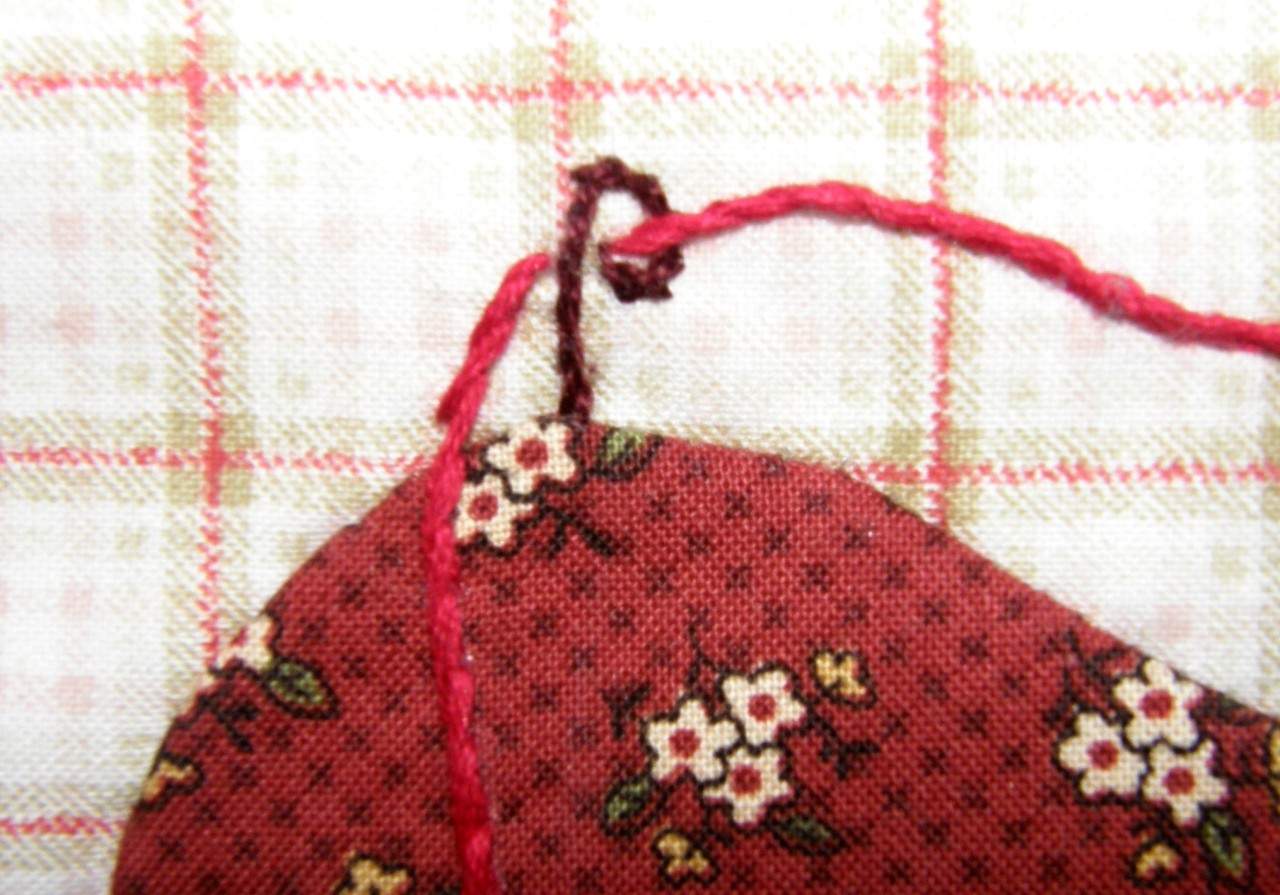 Oblé části natvarujeme. a poté po celém obvodu zadním stehem přišijeme aplikaci k podkladové látce.