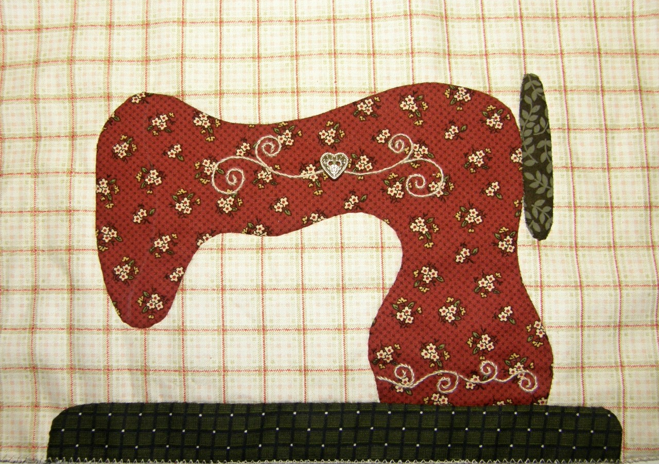 Tvorba bloku začíná vhodnou volbou látky na velký kus aplikace - šicí stroj. Další hledisko pro volbu vhodné látky je to, že tento šicí stroj je středovým - centrálním blokem.